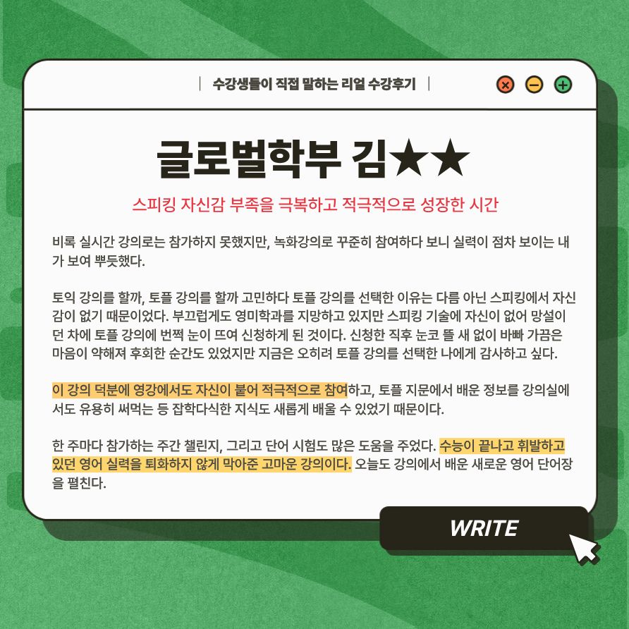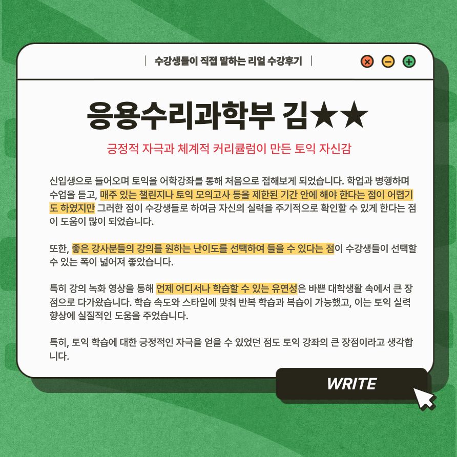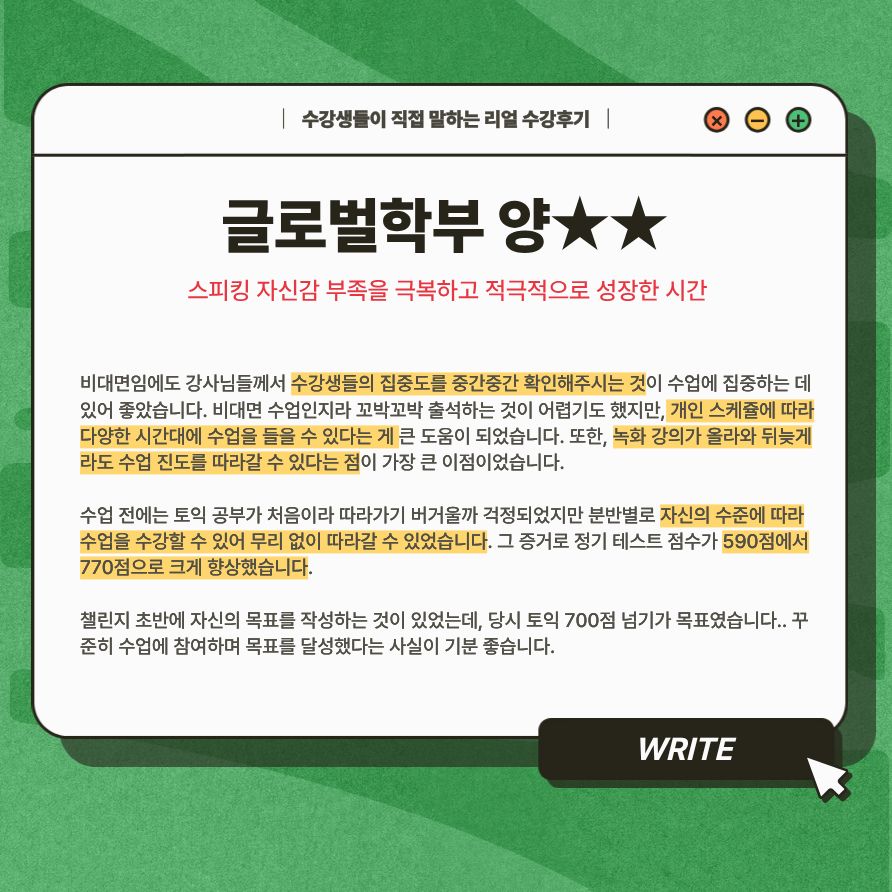 긍정적 자극과 체계적 커리큘럼이 만든 토익 자신감
